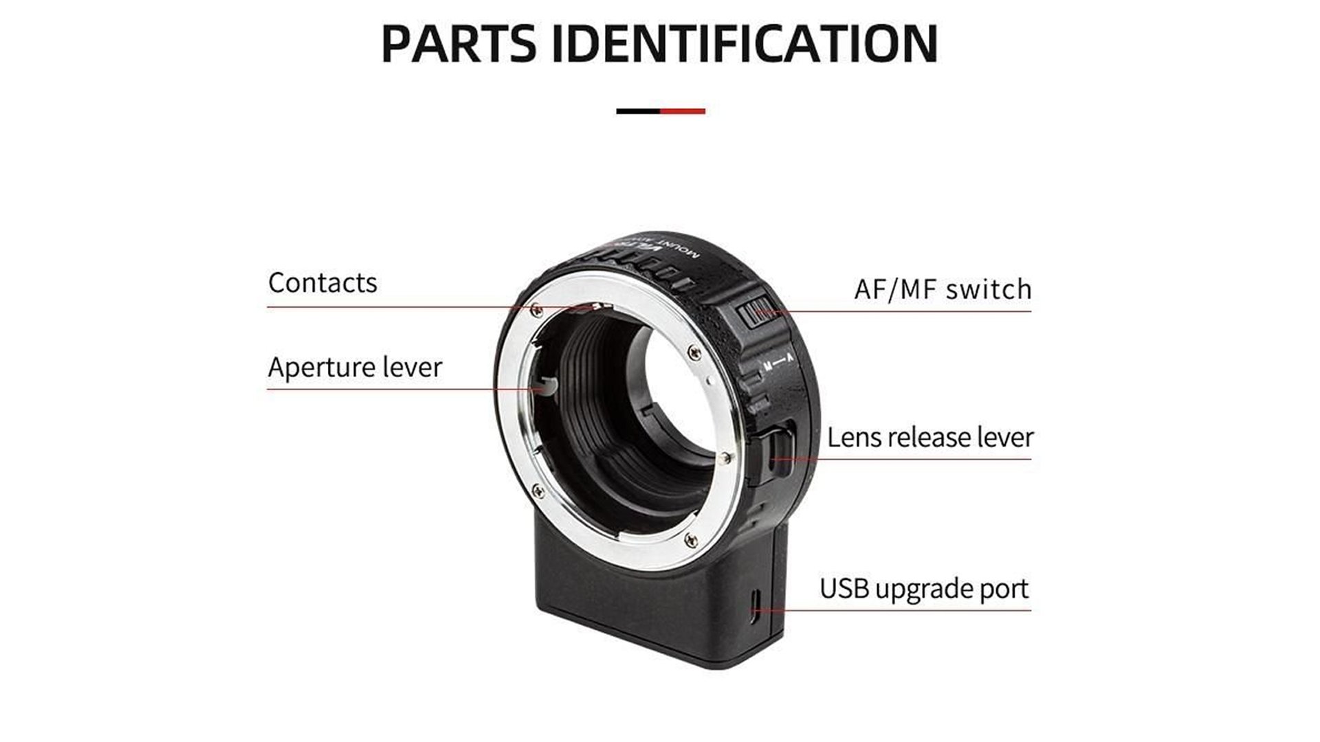 Specifications: Brand: Viltrox Model: NF-M1 Compatible Lens: For Nikon F mount series lenses Compatible Camera: For M4/3 series cameras Focus Mode: Auto focus, manual focus Diameter and Length: Φ78mm*66mm Front Cap: Camera cover Rear Cap: Lens dust cap Item Weight: Approx. 126g / 4.9oz (excluding cap) Package Size: 11 * 10 * 6cm / 4.3 * 3.9 * 2.4in Package Weight: 246g / 8.7oz