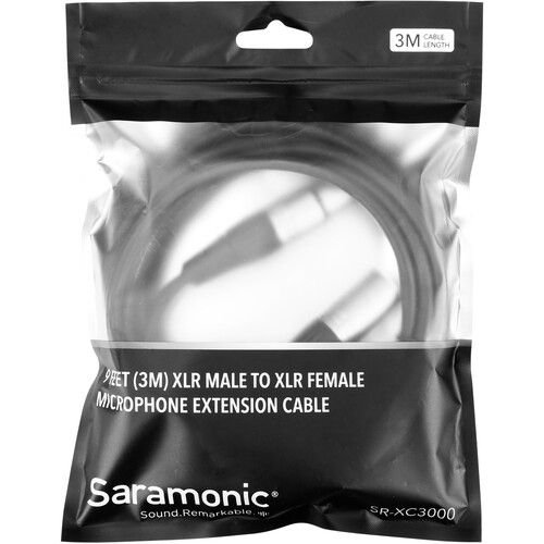 The 9.8' Saramonic SR-XC3000 is a rugged, flexible, and lightweight XLR microphone cable ideal for connecting mics to mixers, preamps, audio interfaces, or recorders, in studio, boompole, and handheld interview applications. With its spiral-wound copper shielding and twin conductive PVC inner shields, the SR-XC3000 offers excellent rejection of EMI and RFI noise while delivering ultralow-noise performance. This balanced mic cable is terminated with straight XLR 3-pin connectors—female on one end and male on the other.