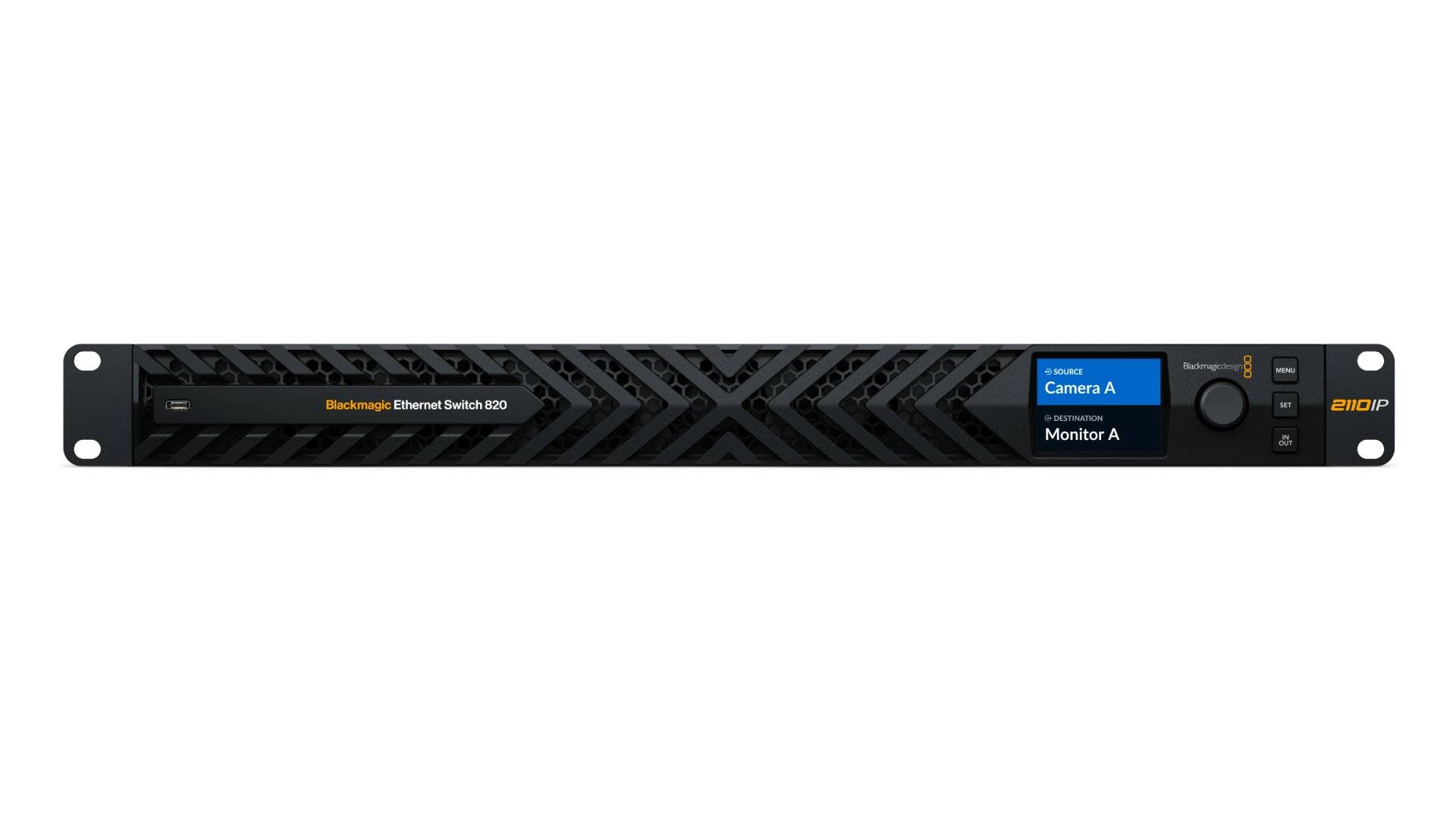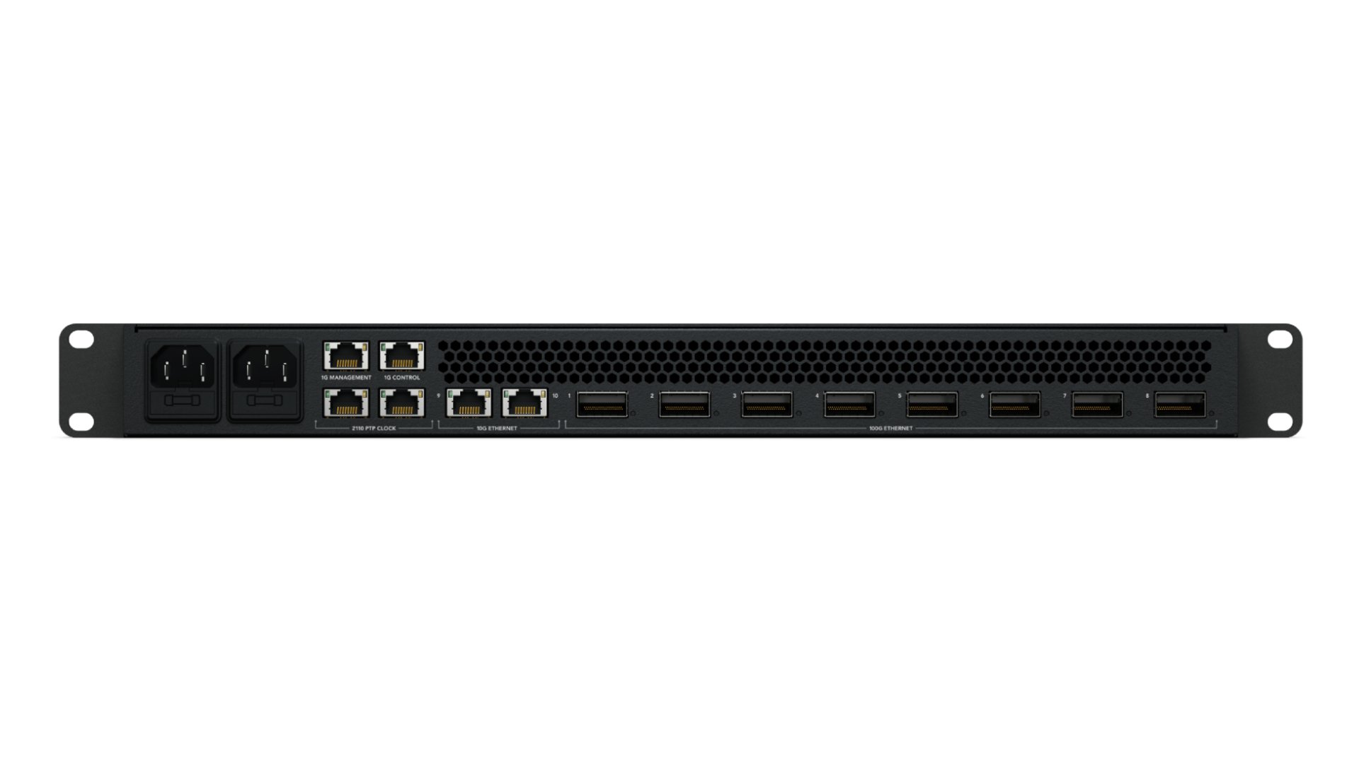 The Blackmagic Ethernet Switch 820 is designed for advanced broadcast systems. It delivers high performance with low latency and all connections are on the rear, keeping cables neat, hidden and secure. You get 8 x 100G and 2 x 10G Ethernet connections plus simple front panel SMPTE-2110 routing. The professional front-to-back cooling design is also very quiet! For advanced systems, it has two redundant PTP clock Ethernet connections, a separate NMOS control port and a dedicated management port.