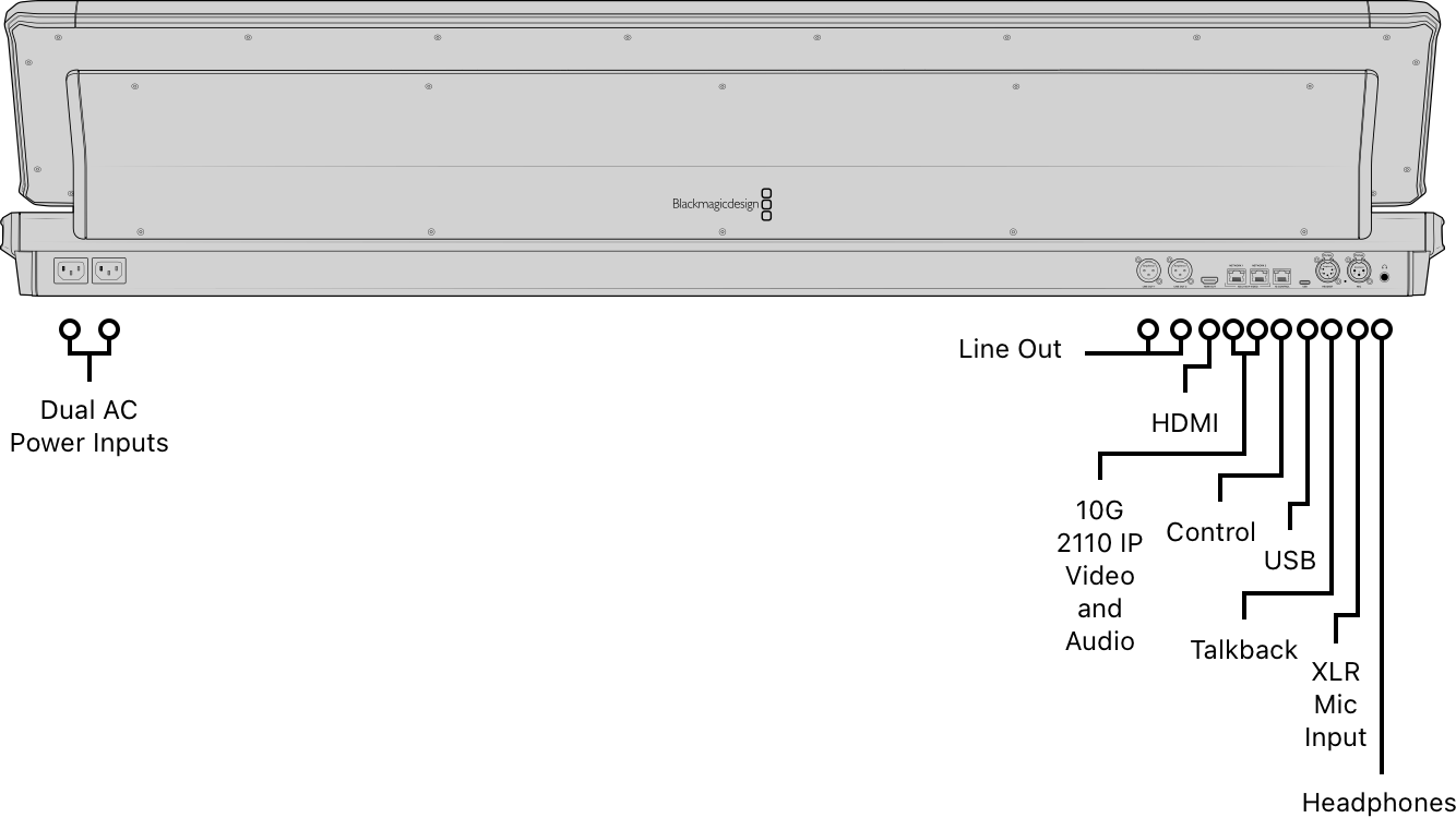 Fairlight Live software when connected by Ethernet or USB.